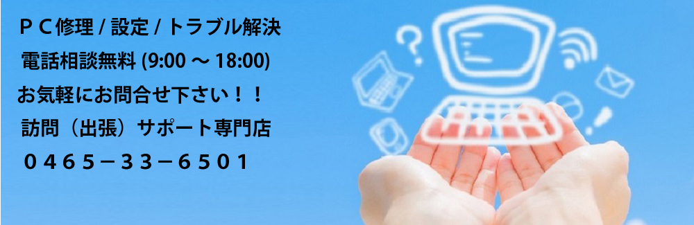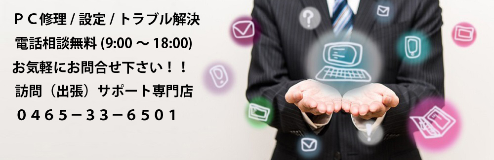 神奈川県西部を中心に、主にパソコンや周辺機器の各種設定・トラブル対応・パソコン家庭教師等の訪問サポートサービスを提供しております。 元システムエンジニアが営業しております。作業中・移動中など電話に出られない場合がございますがご容赦下さい。
